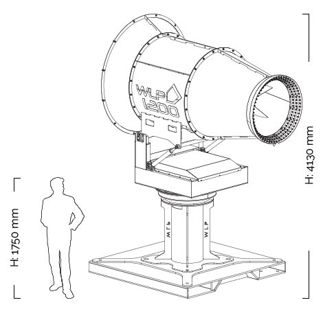 WLP dugkanoner er designet til at minimere støv og partikelspredning på byggepladser, i nedrivningsområder og ved materialehåndtering. Ved at skabe en fin forstøvning binder dugkanonen støvet i luften og sikrer et sundere arbejdsmiljø samt bedre sigtbarhed på pladsen.