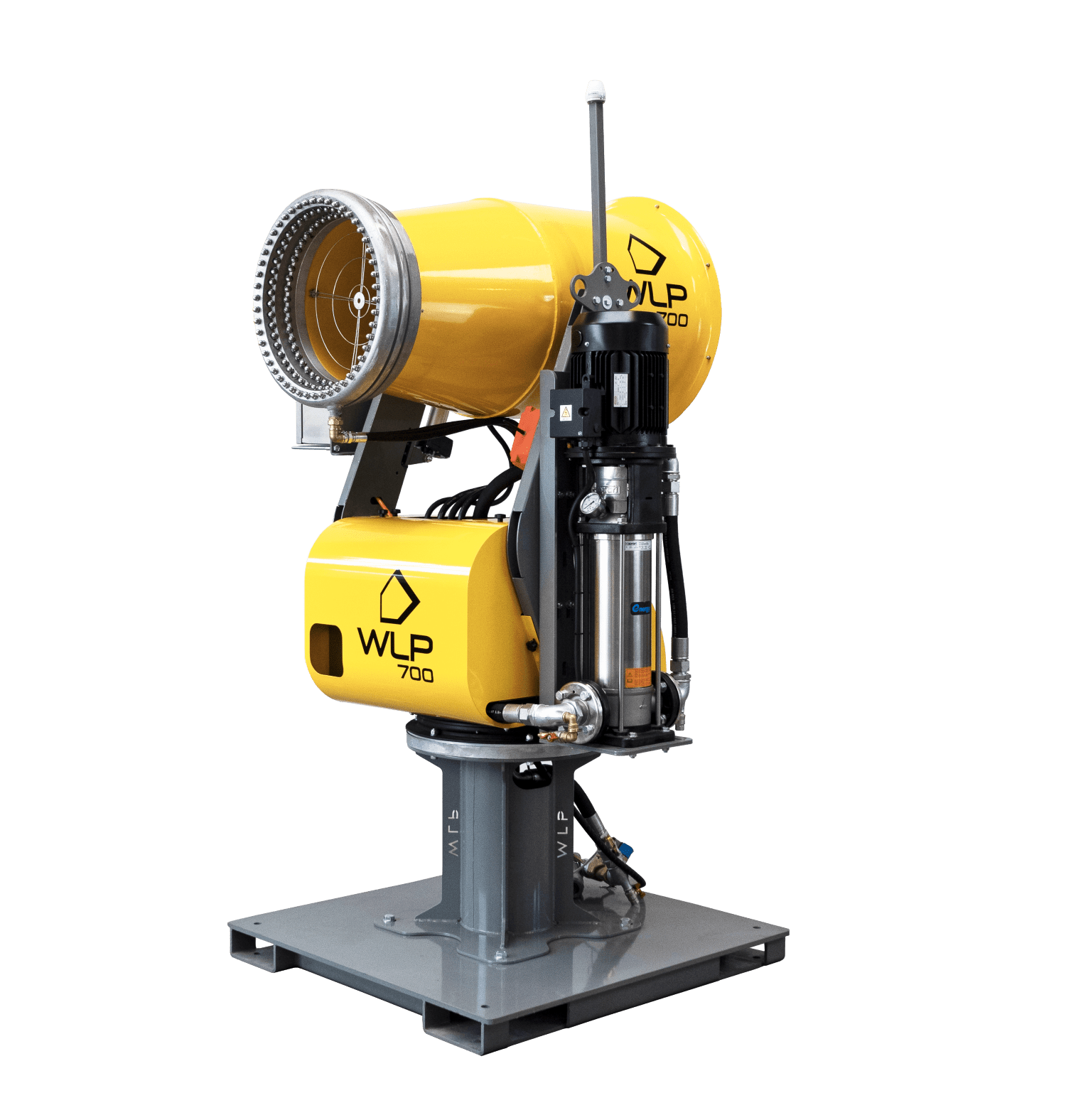 WLP dugkanoner er designet til at minimere støv og partikelspredning på byggepladser, i nedrivningsområder og ved materialehåndtering. Ved at skabe en fin forstøvning binder dugkanonen støvet i luften og sikrer et sundere arbejdsmiljø samt bedre sigtbarhed på pladsen.