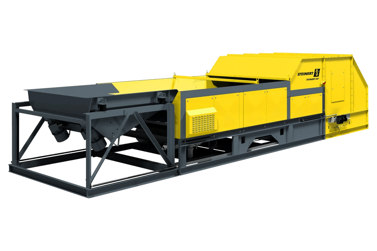 Efter materialet har været igennem shredderen fjernes jernholdige metaller, så de ikke belaster de efterfølgende procestrin – det klares relativt enkelt med enten en magnettrommel eller overbåndsmagnet.