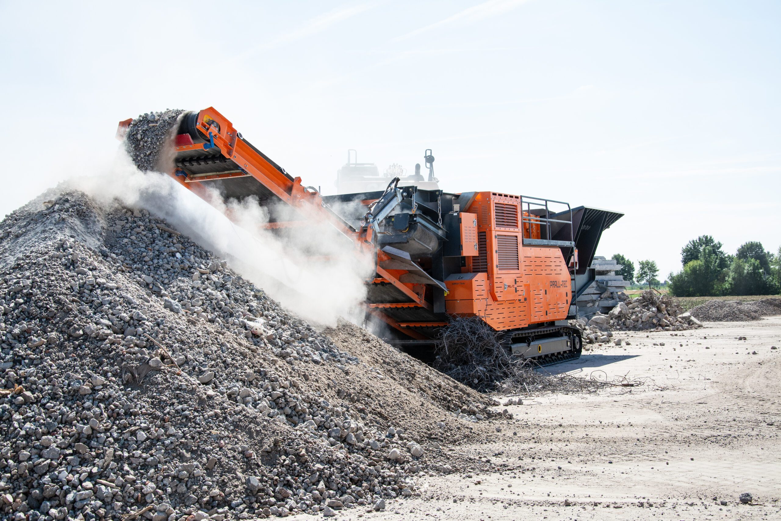 Med en mobil knuser fra Prall-Tec kan betonen nedknuses direkte på byggepladsen, hvilket både minimerer transport og gør det muligt at genbruge materialet som stabilgrus eller fyld.